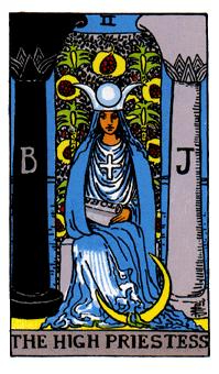 女祭司攸关潜意识的连结,如果说魔法师是物质的传承创造者,象征一物质的掌握与变化,基因的DNA,那女祭司就是潜意识的创造者了,其作用方式以相当隐微的方式展现,并且背后的生命之果,代表潜意识的延续与创造,就是一般所讲的集体潜意识,精神的DNA,许多潜意识的东西会经由父母、社会的延续而流传,时间可能长达几代甚是千年,比如象是为何人类普遍怕蛇、鬼魂的形象、对于神话的解读等等。